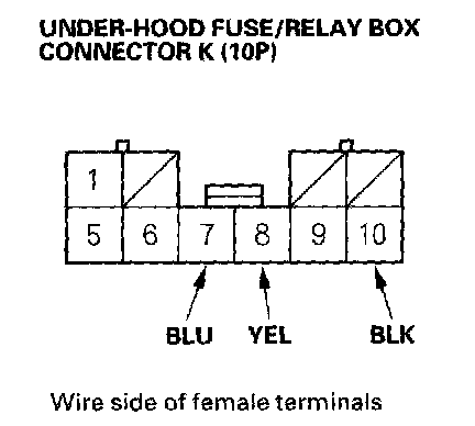 2. Disconnect the under-hood fuse/relay box connector K (10P).
