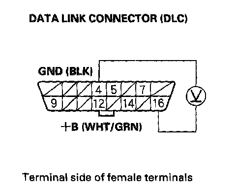 2. Measure voltage between DLC terminals No.4 and No.16.