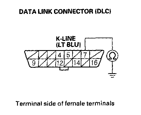 9. Check for continuity between DLC terminal No.7 and body ground.