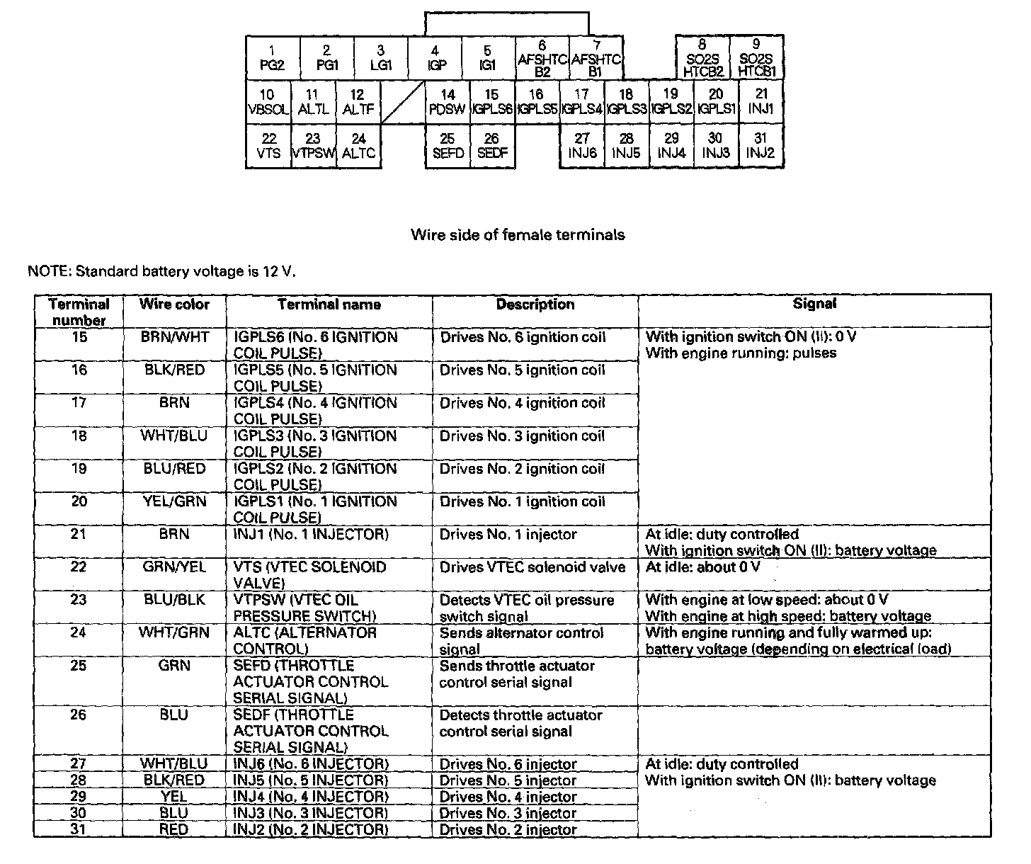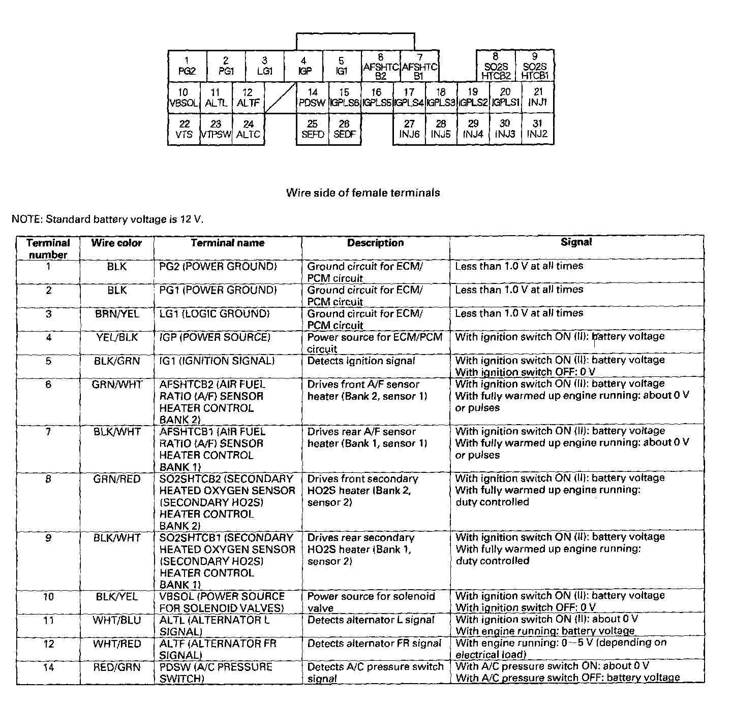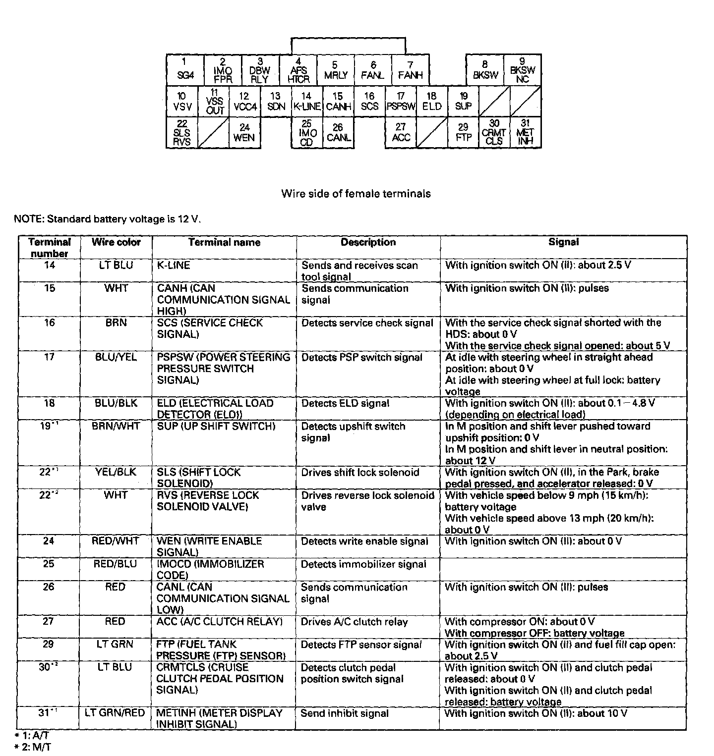 ECM/PCM Inputs And Outputs At Connector E (31P) Part 1: