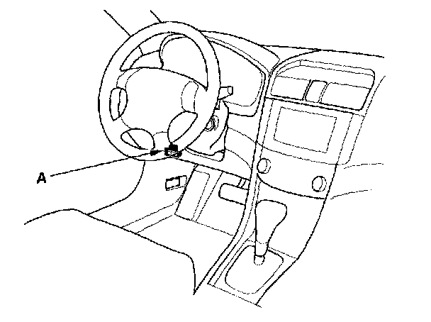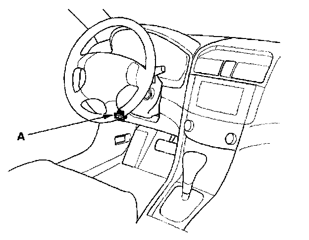2. Connect the HDS or the Honda Interface Module (HIM) to the data link connector (DLC) (A) located under the driver's side of the dashboard.