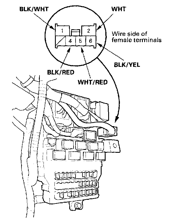 4. Disconnect the 6P connector from the driver's under-dash fuse/relay box.