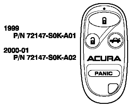 Home >> Acura >> 2004 >> TSX L4-2.4L >> Repair and Diagnosis >> Body and Frame >> Locks >> Keyless Entry >> Keyless Entry Transmitter >> Technical Service Bulletins >> Keyless Entry - Description/Identification/Programming >> With Factory-Installed Security System >> 1999-2001 3.2TL