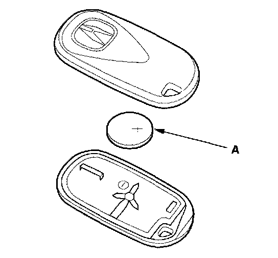 4. Replace the transmitter battery (A) with a new one, and try to lock and unlock the doors with the transmitter by pressing the lock or unlock button five or six times.