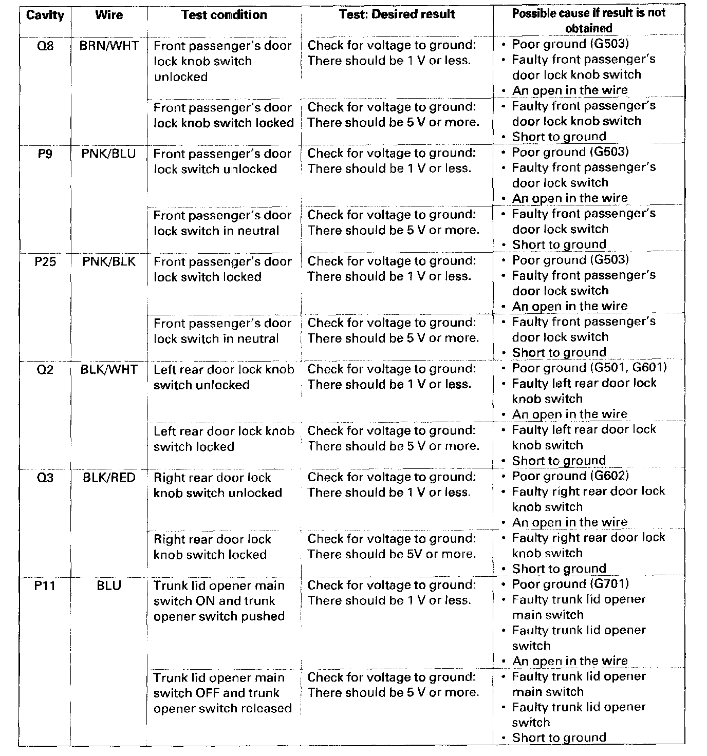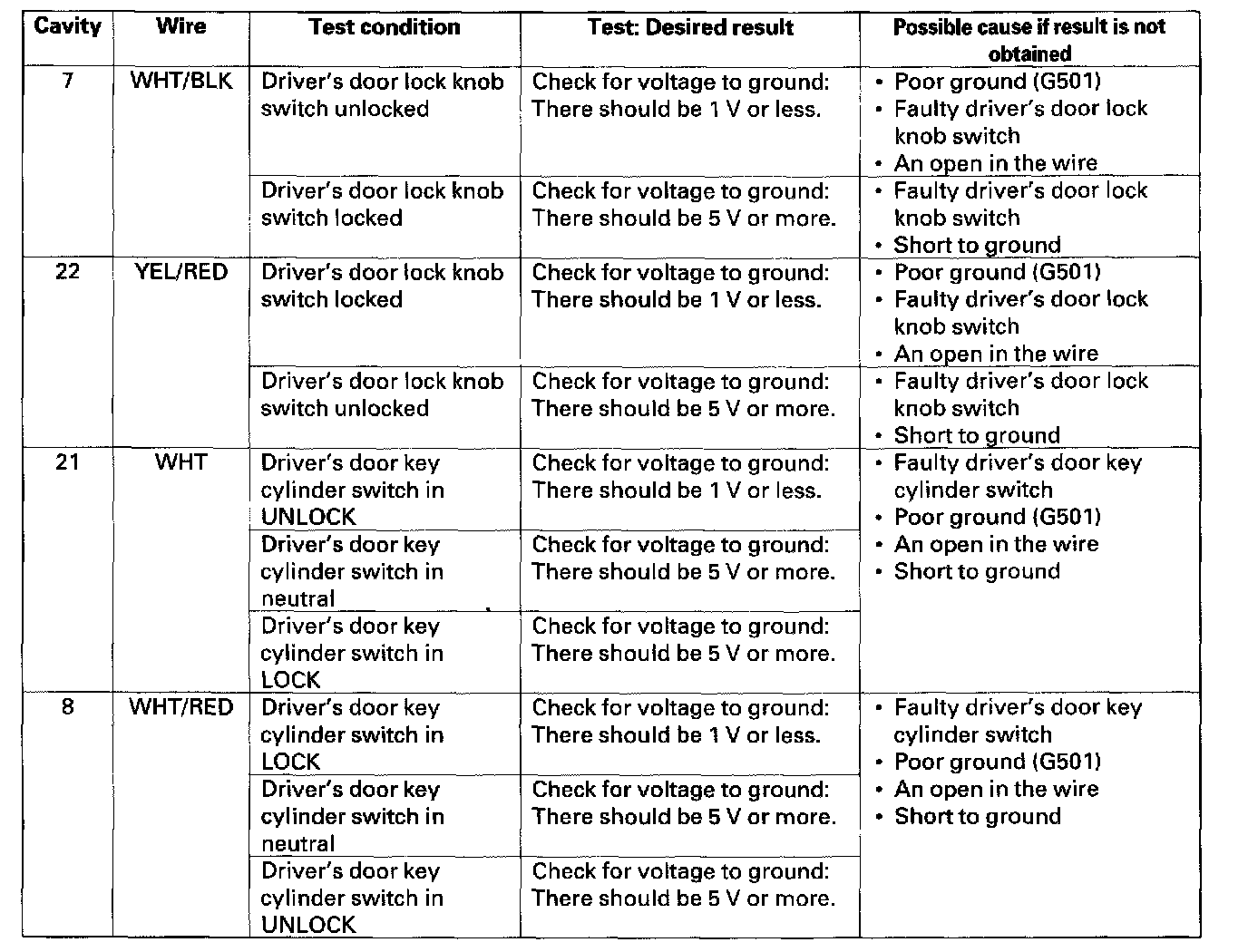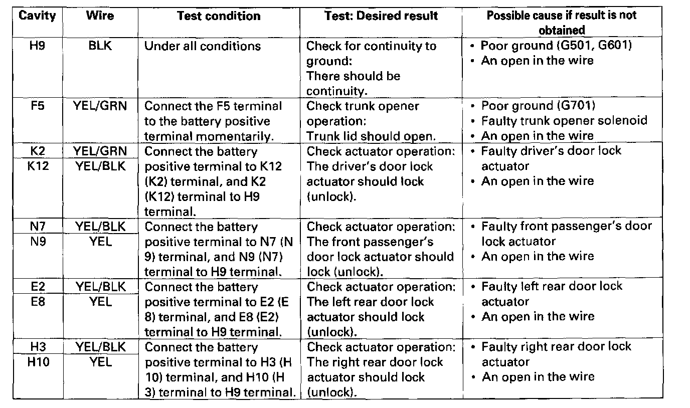 Home >> Acura >> 2004 >> TSX L4-2.4L >> Repair and Diagnosis >> Body and Frame >> Locks >> Power Locks >> Power Door Lock Control Module >> Testing and Inspection