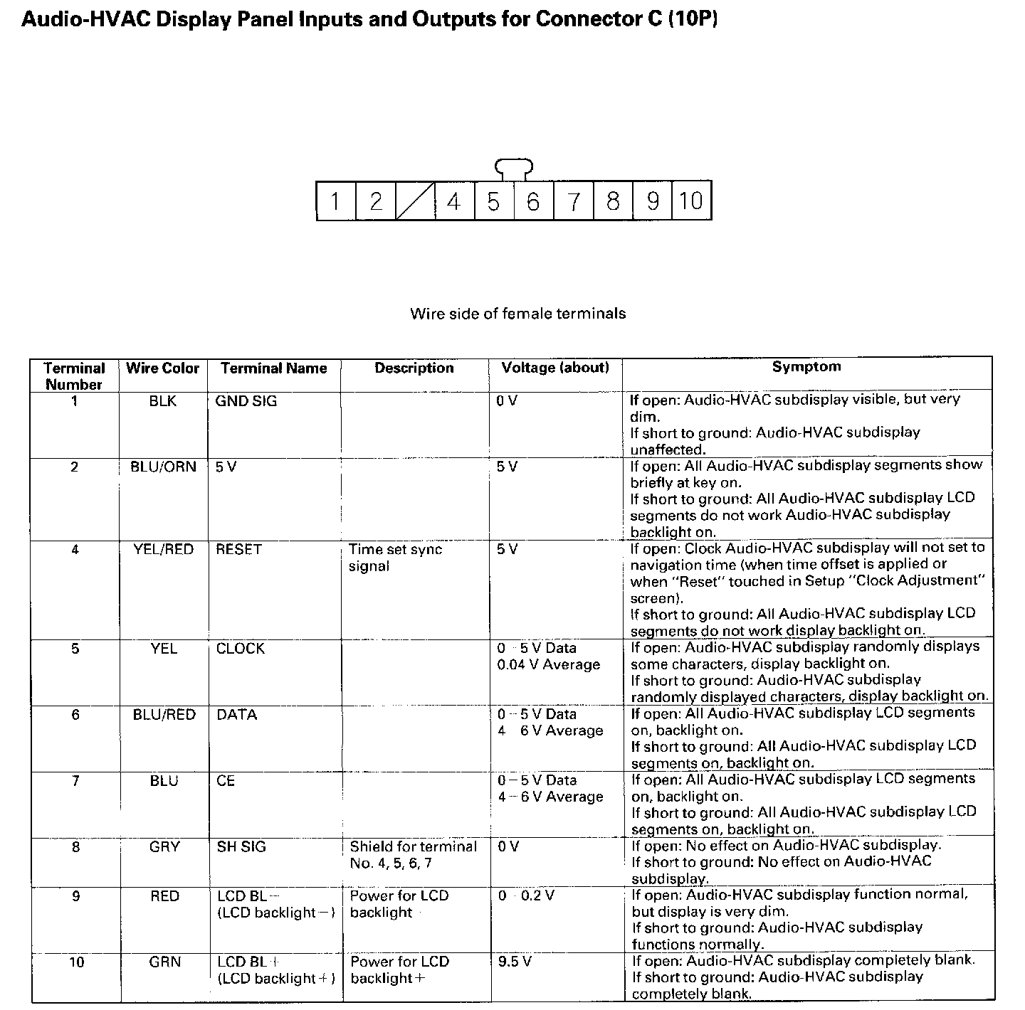 Audio-HVAC Subdisplay Inputs And Outputs For 10P Connector: