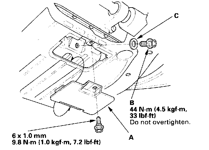 4. Reinstall the drain bolt with a new washer (C).