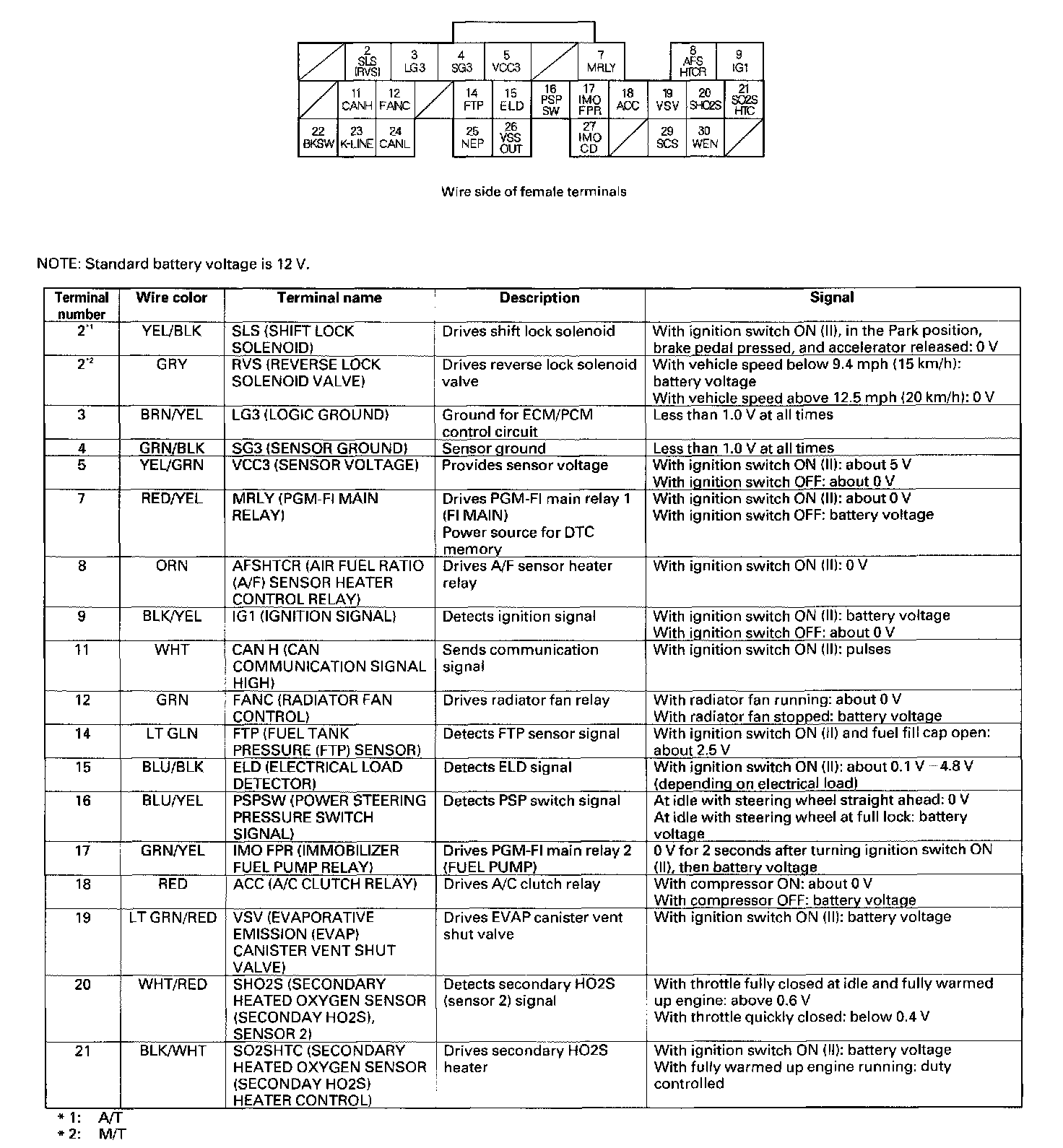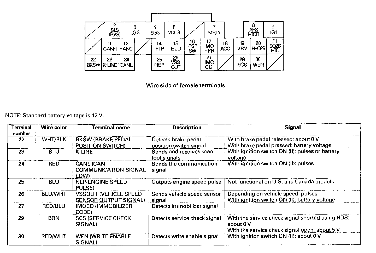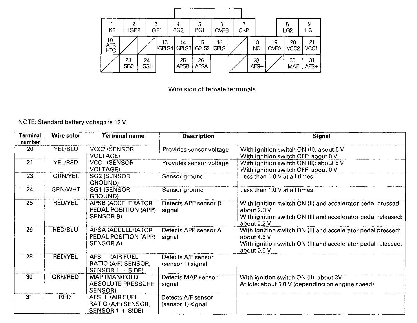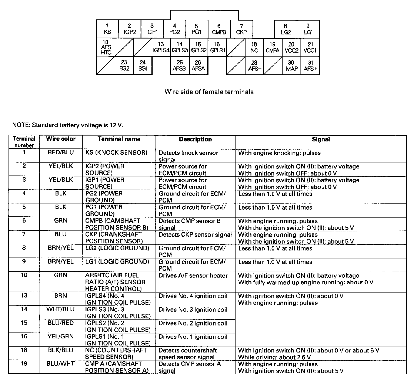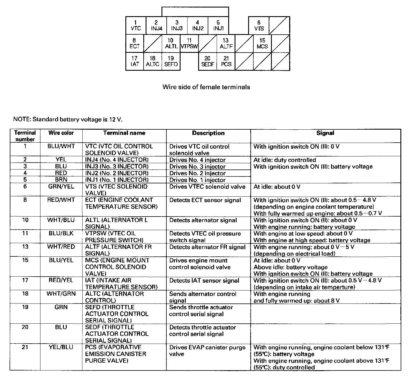 Home >> Acura >> 2004 >> TSX L4-2.4L >> Repair and Diagnosis >> Powertrain Management >> Computers and Control Systems >> Relays and Modules - Computers and Control Systems >> Engine Control Module >> Testing and Inspection >> Pinout Values and Diagnostic Parameters