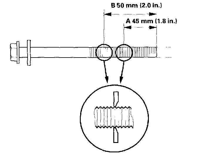 If either diameter is less than 10.6 mm (0.42 inch), replace the cylinder head bolt.