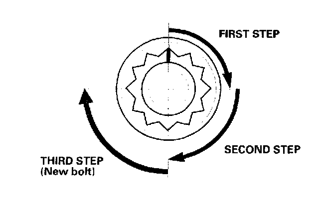 After torquing, tighten all cylinder head bolts in two steps (90° per step). If you are using a new cylinder head bolt, tighten the bolt an extra 90°.
