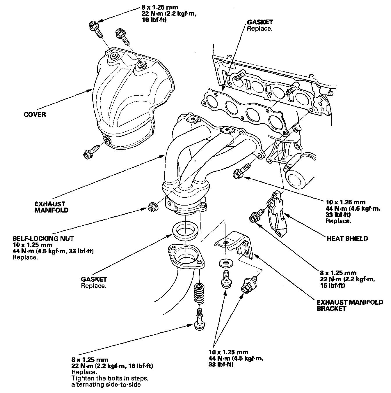 8 mm bolts: 22 Nm (2.2 kgf-m, 16 ft. lbs.)