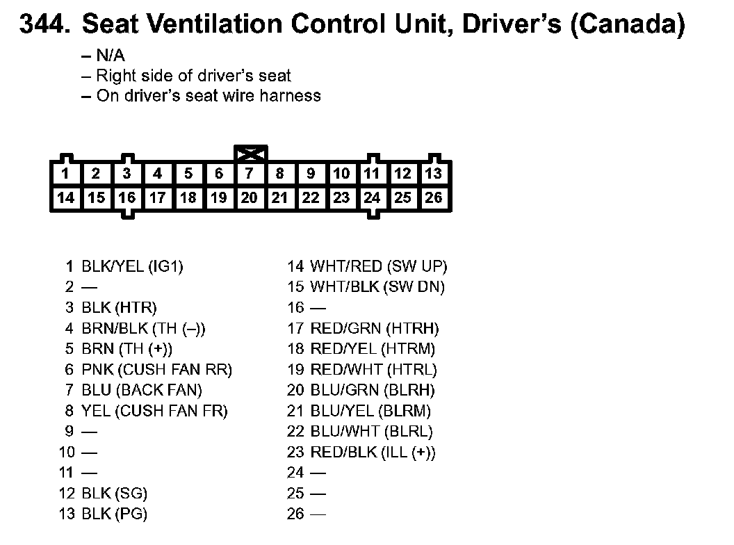 344. Seat Ventilation Control Unit, Driver's (Canada):