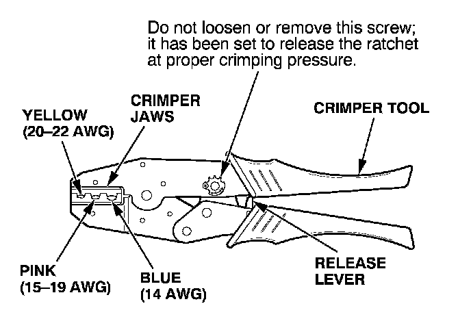8. Put the splice connector in the proper size slot in the Crimper Tool, slide it to one end (where the flare begins), and close the crimper handles far enough to hold it in place. To release the ratchet mechanism at any point after the first click, squeeze the handles slightly and push the release lever, then let the handles open.