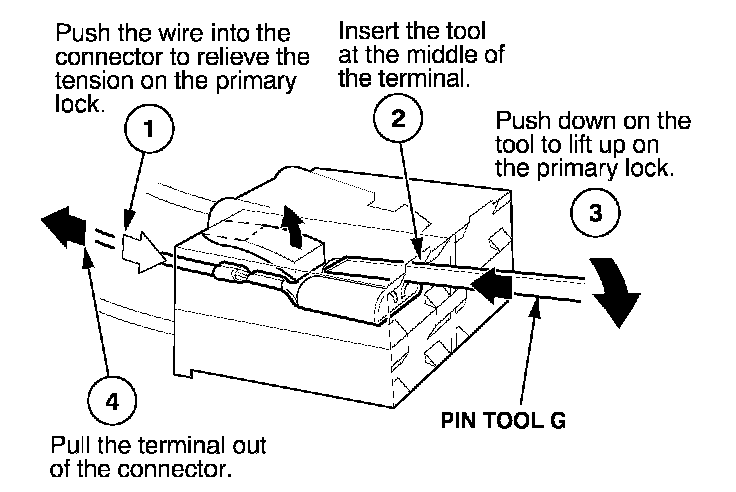 Before you begin, inspect the wire you are about to repair for damage and length. Make sure the wire will be long enough to make a terminal repair without stretching it when you reinstall the terminal in the connector. If the wire is too short, or if access to the connector is too restricted to make a terminal repair, you may need to install a pigtail terminal (a short length of wire with a factory-crimped terminal on it). Refer to HOW TO INSTALL PIGTAIL TERMINALS.