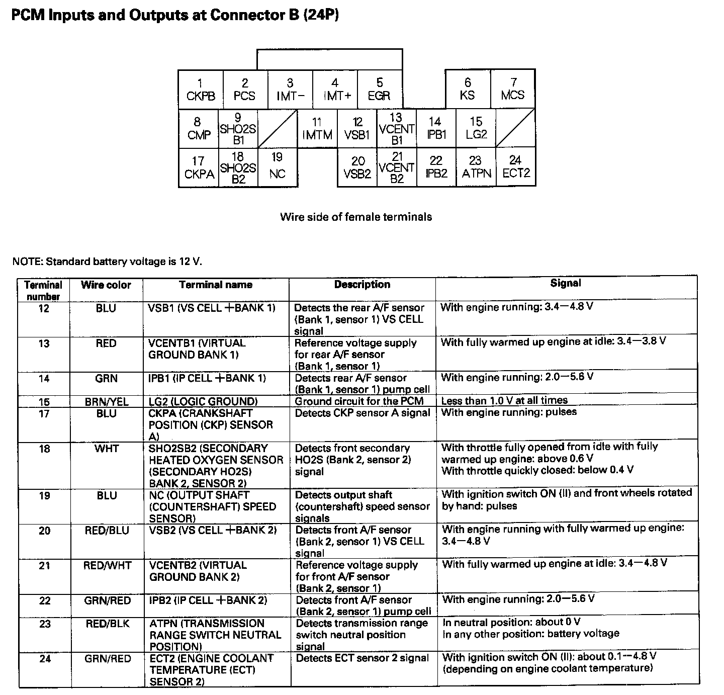 PCM Inputs And Outputs At Connector B (24P) Part 2: