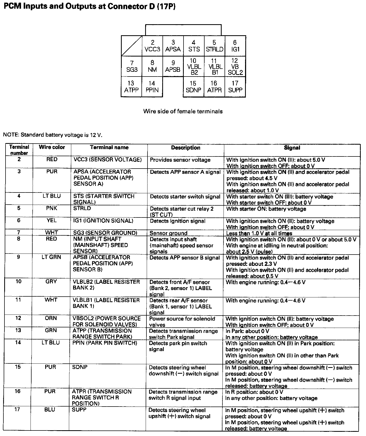 PCM Inputs And Outputs At Connector D (17P):