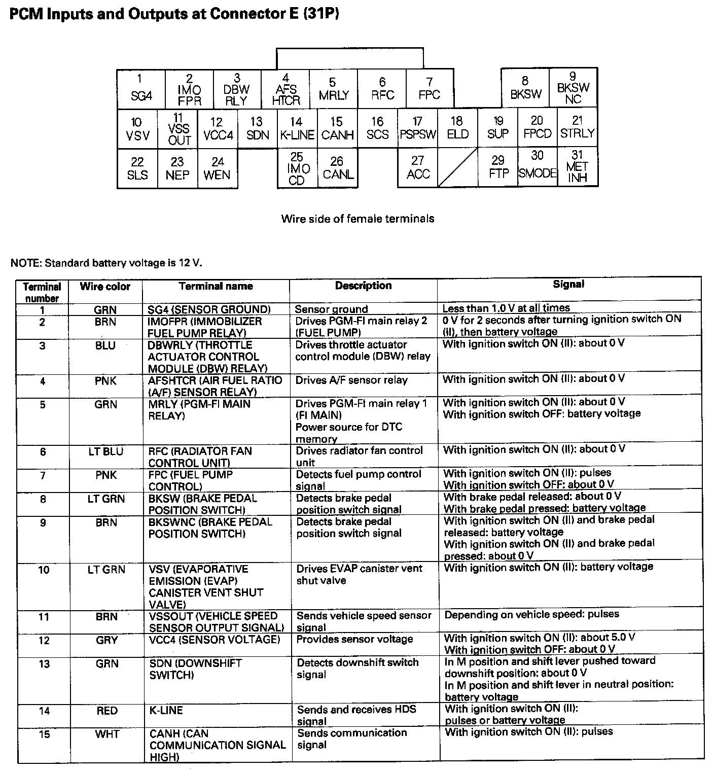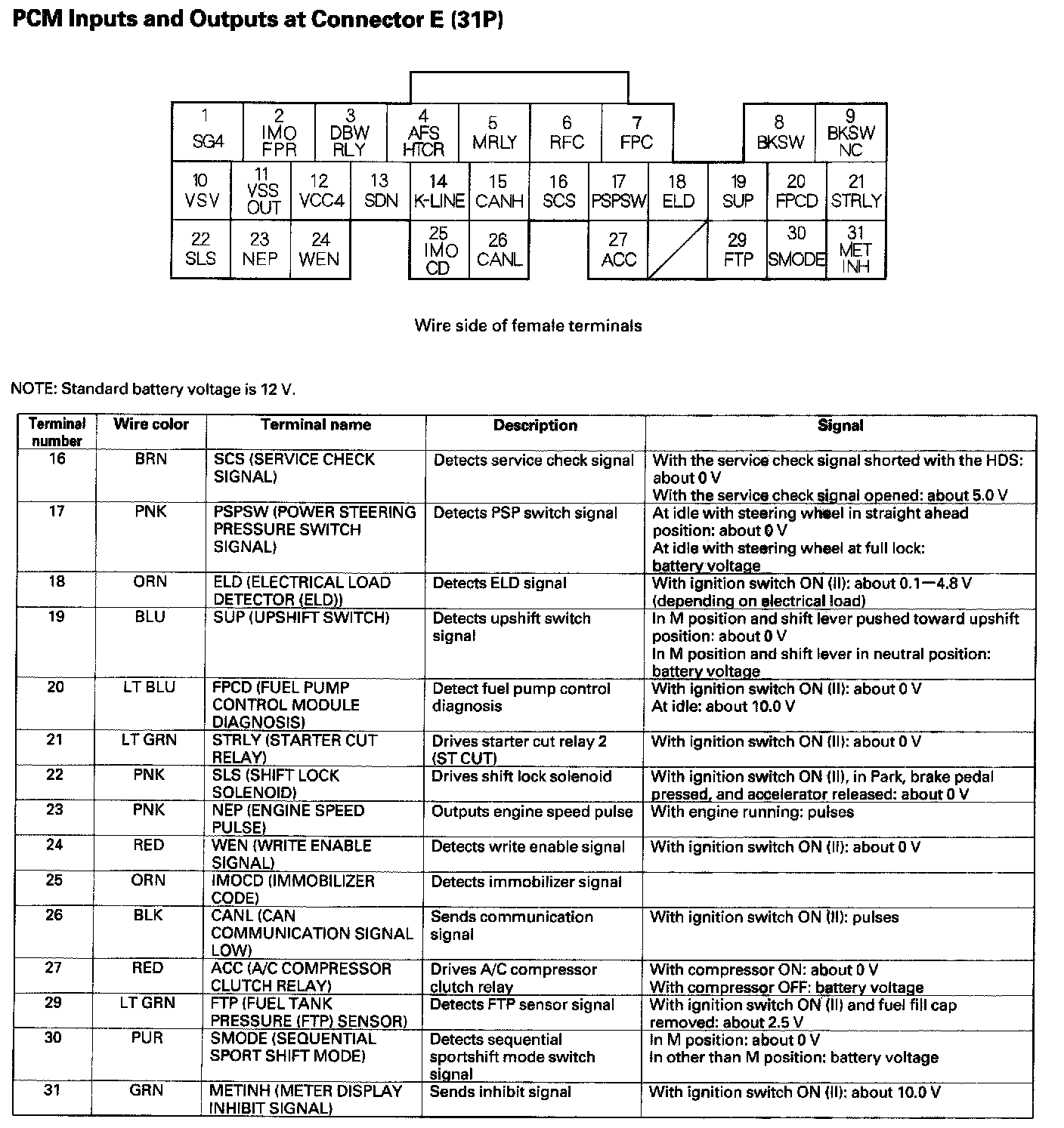 PCM Inputs And Outputs At Connector E (31P) Part 2: