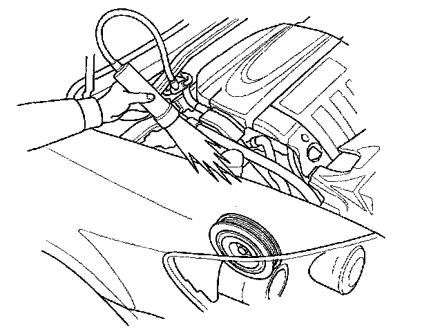 2. Start the engine. Hold the engine speed at 3,000 rpm with no load (in Neutral) until the radiator fan comes on, then let it idle.