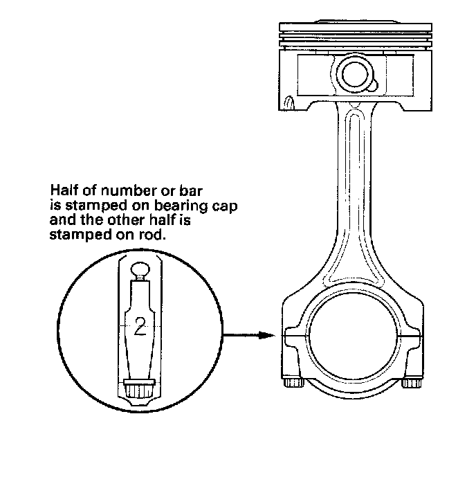 Connecting Rod Journal Code LocationsNumbers or bars have been stamped on the side of each connecting rod as a code for the size of the big end. Use them, and the letters or bars stamped on the crank (codes for rod journal size), to choose the correct bearings. If the codes are indecipherable because of an accumulation of dirt and dust, do not scrub them with a wire brush or scraper. Clean them only with solvent or detergent.