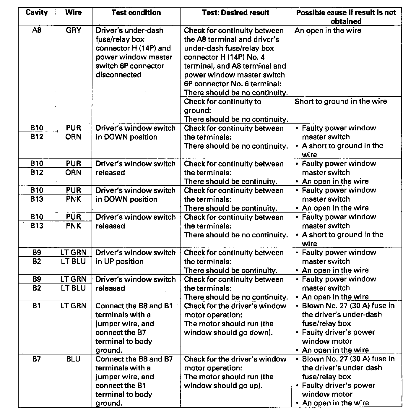 - If all the input tests prove OK, the control unit must be faulty; replace the driver's MPCS unit and go to step 7.