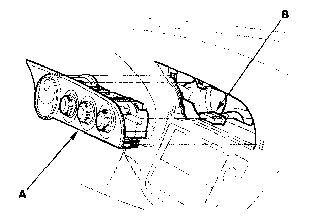 Climate Control Unit Removal and Installation1. Remove the climate control unit (A) from the dashboard, then disconnect the 30P connector (B). Be careful not to damage the control unit or the dashboard.