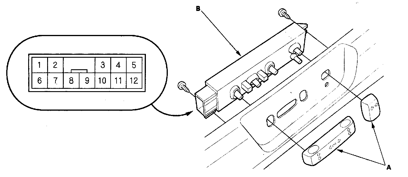 Switch Test/Replacement1. Remove the power seat adjustment switch knobs (A) and recline cover from the driver's power seat, then remove the two screws and the power seat switch.