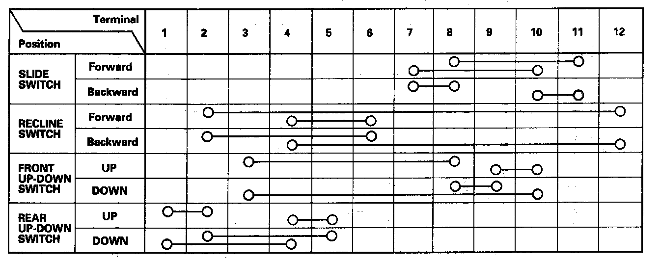 4. Check for continuity between the terminals in each switch position according to the table