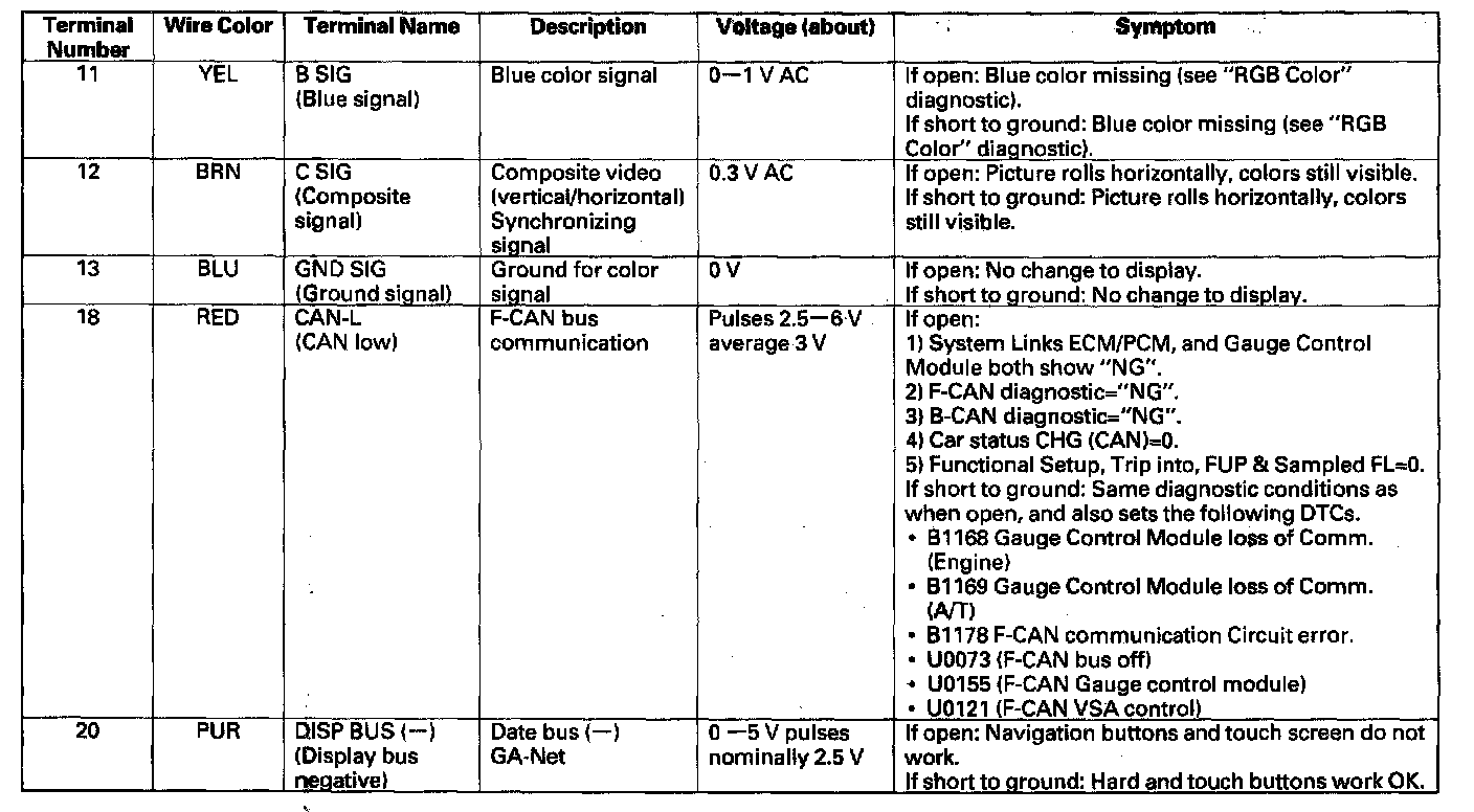 Navigation Unit Inputs And Outputs For Connector A (20P):