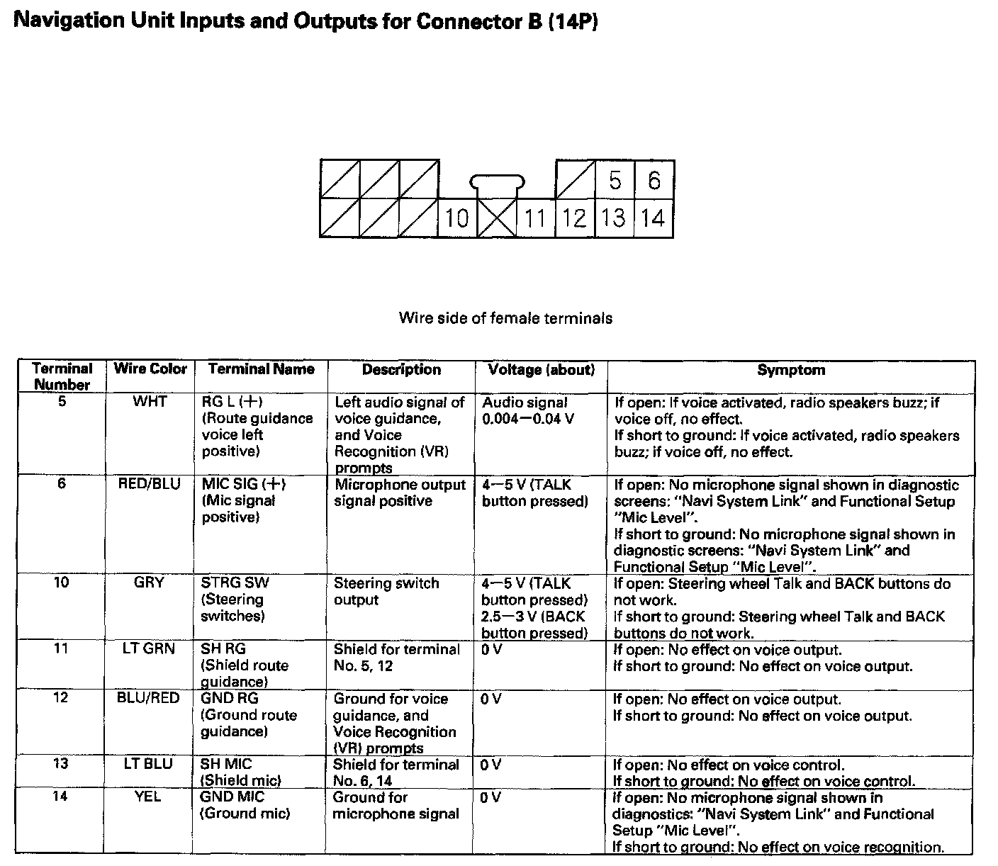 Navigation Unit Inputs And Outputs For Connector B (14P):
