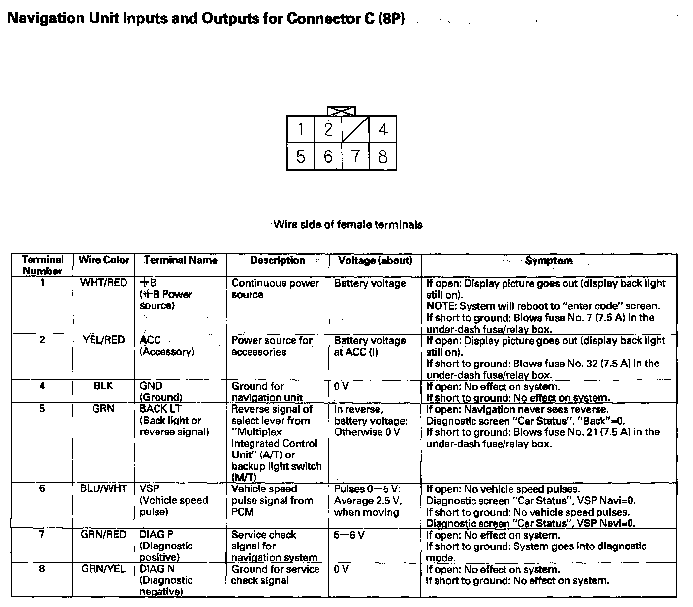 Navigation Unit Inputs And Outputs For Connector C (8P):