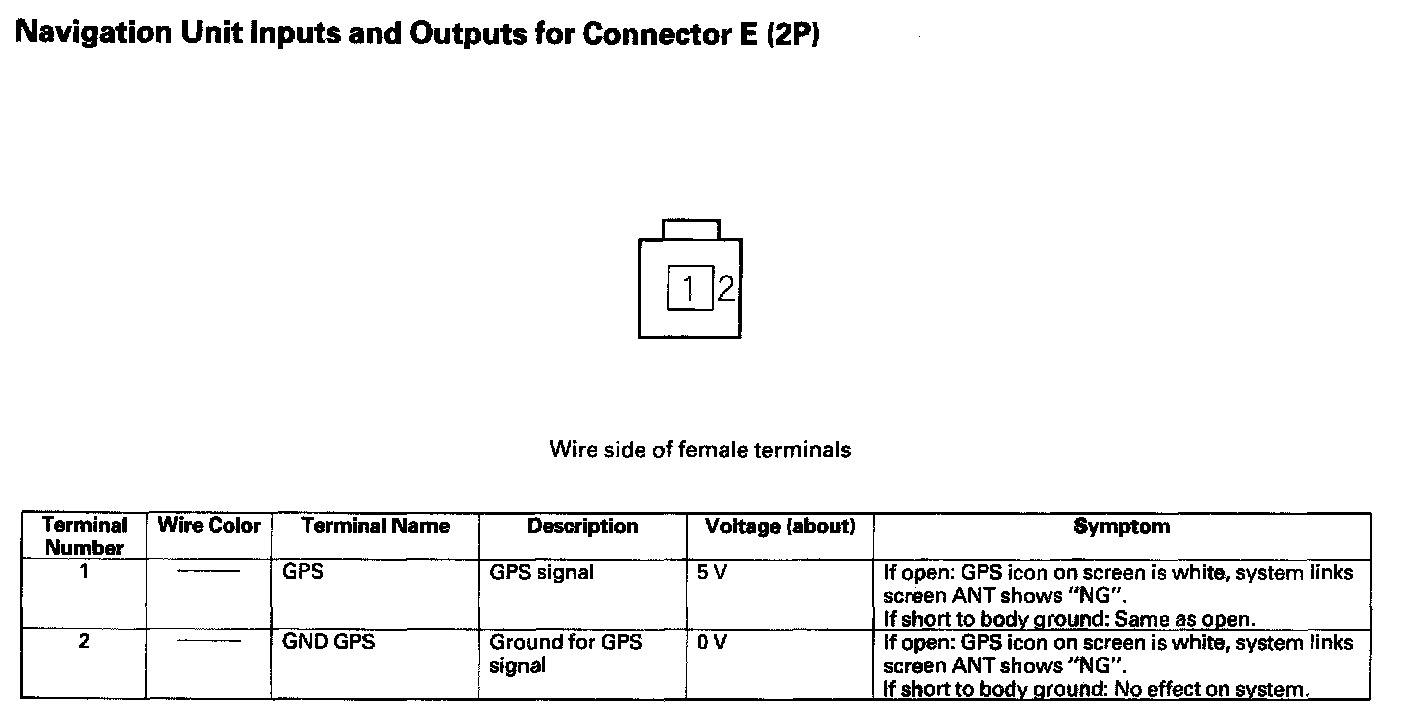 Navigation Unit Inputs And Outputs For Connector E (2P):