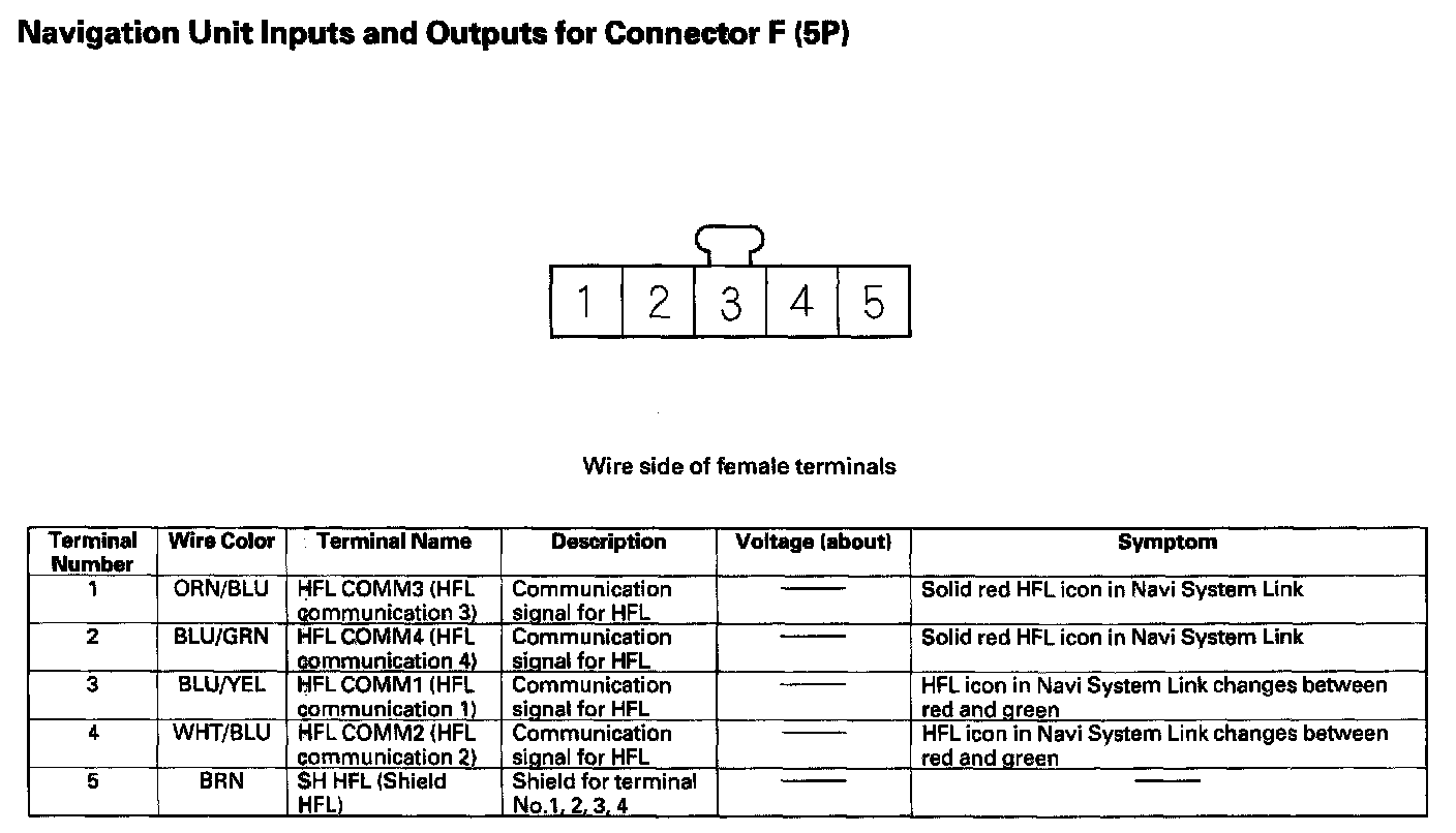 Navigation Unit Inputs And Outputs For Connector F (5P):