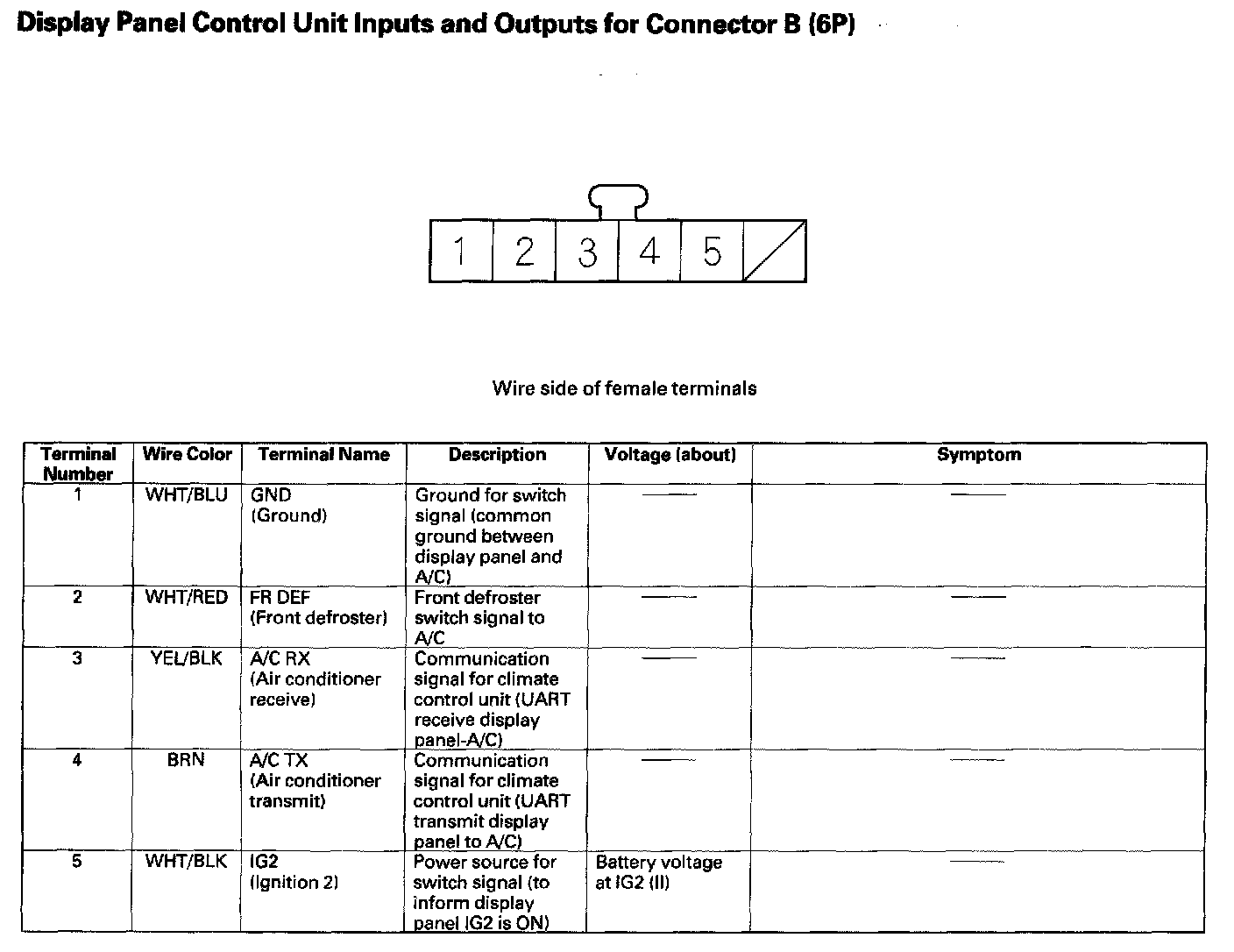 Display Panel Control Unit Inputs And Outputs FoT Connector B (6P):