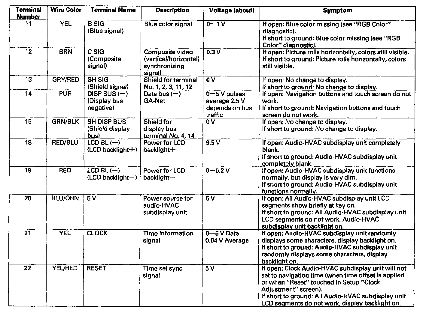 Audio-HVAC Subdisplay Unit Inputs And Outputs For 10P Connector: