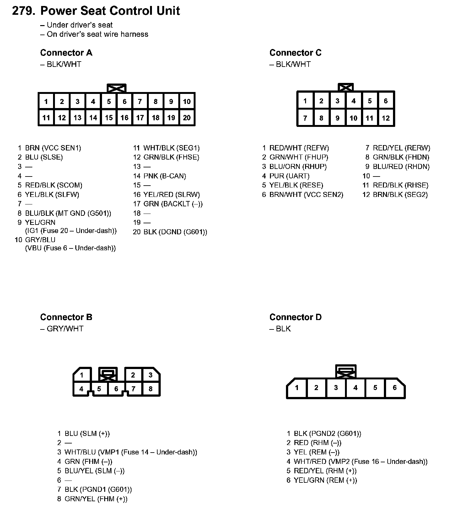 279. Power Seat Control Unit: