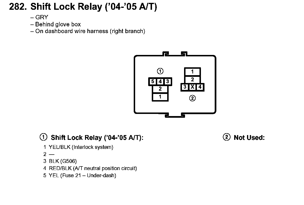 282. Shift Lock Relay ('04-'05 A/T):