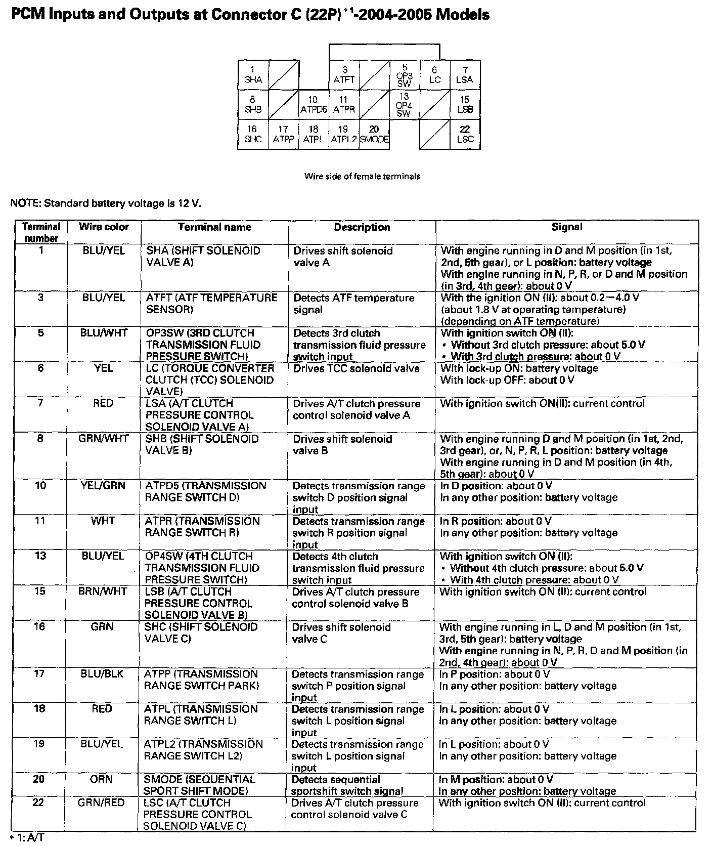 ECM/PCM Inputs And Outputs At Connector C (22P):