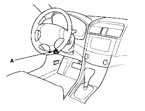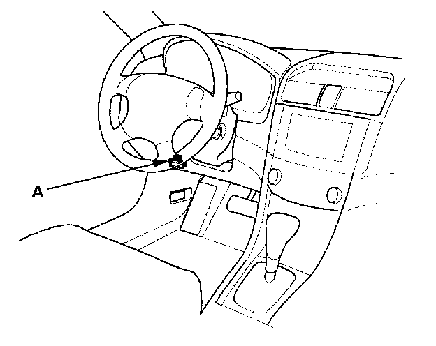 2. Connect the HDS or the Honda interface module (HIM) to the data link connector (DLC) (A) located under the driver's side of the dashboard.