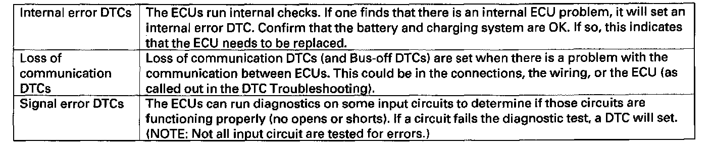 There are three types of DTCs used by the CAN networks.