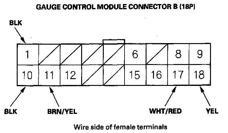 5. Disconnect the 1SP connector from the gauge control module, and make these input tests at the connector.