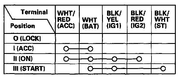 6. If the continuity checks do not agree with the table, replace the steering lock.