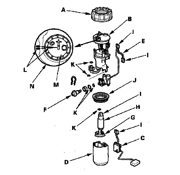 10. When connecting the fuel pump assembly, make sure the connection is secure and the suction filter (G) is firmly connected to the fuel pump (H).