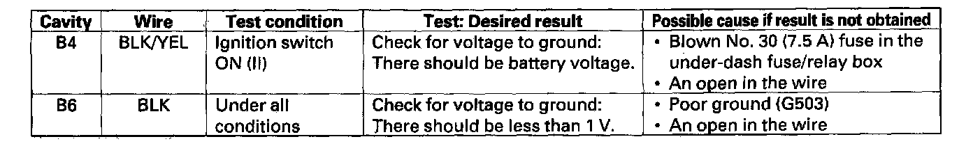 4. Reconnect the connector to the audio-HVAC display panel, and make these input tests at the connector.