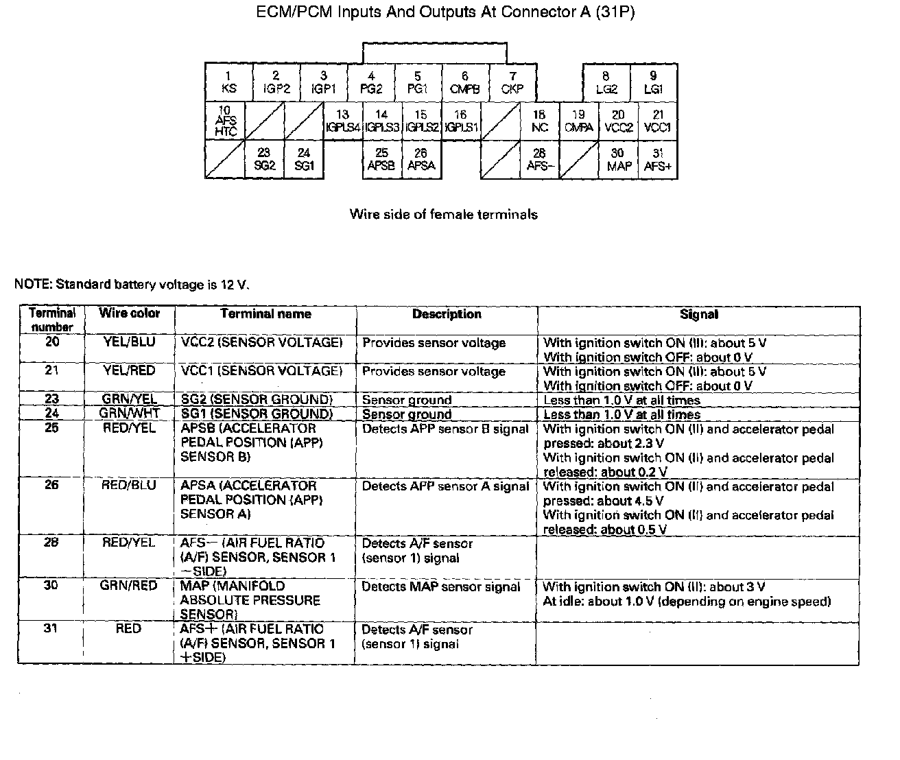 ECM/PCM Inputs And Outputs At Connector A (31P) Part 1: