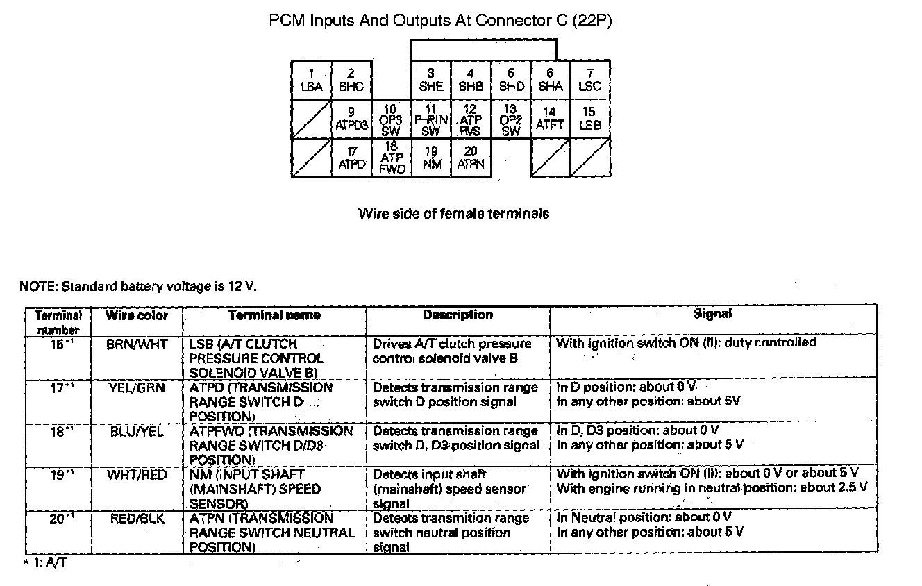 PCM Inputs And Outputs At Connector C (22P) Part 1: