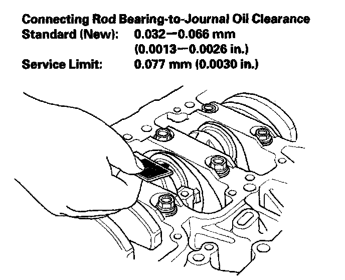 Remove the rod cap and bearing half, and measure the widest part of the plastigage.