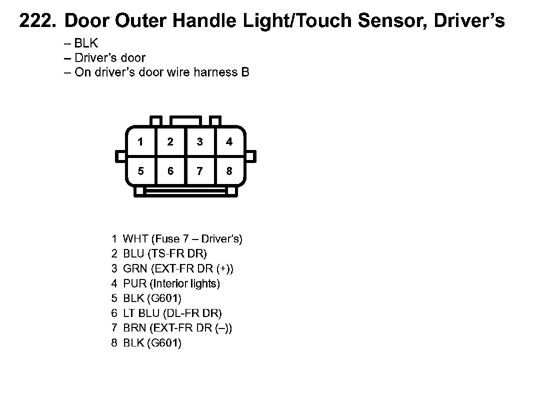 222. Door Outer Handle Light/Touch Sensor, Driver's: