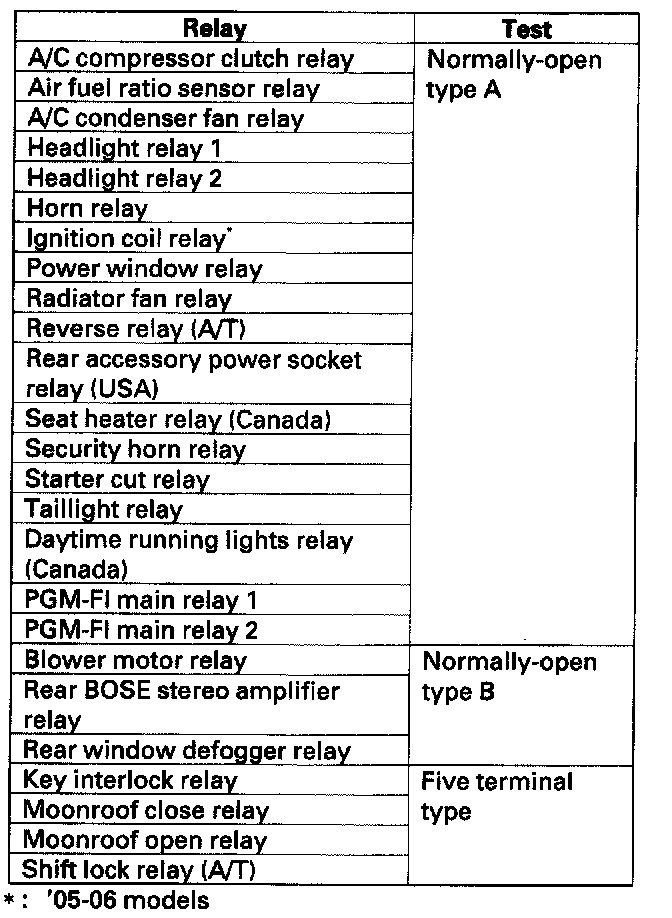Power Relay TestUse this chart to identify the type of relay, then do the test listed for it.