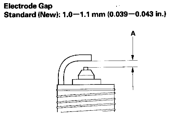 3. Do not adjust the gap (A) of iridium tip plugs;replace the spark plug if the gap is out of specification.