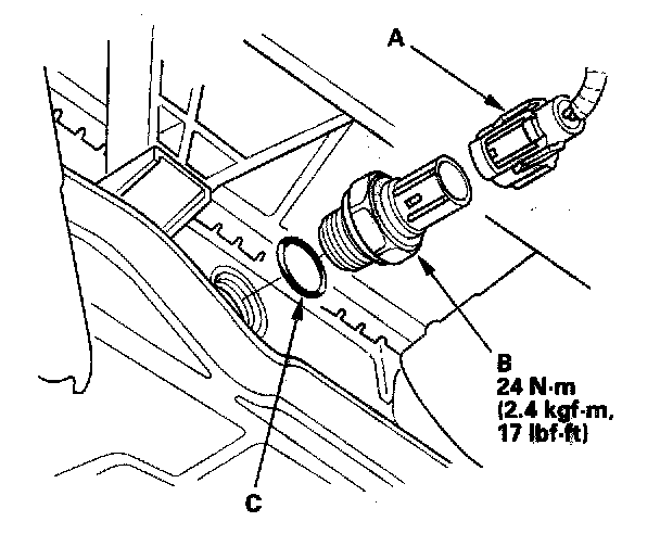 3. Disconnect ECT sensor 2 connector (A), then remove ECT sensor 2 (B).